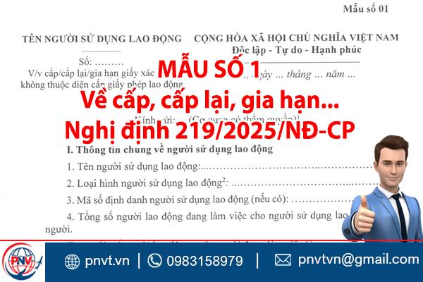Mẫu số 01 theo Nghị định 219/2025/NĐ‑CP là mẫu đề nghị cấp, cấp lại hoặc gia hạn giấy xác nhận người lao động nước ngoài không thuộc diện cần cấp giấy phép lao động. Đây là biểu mẫu quan trọng nằm ngay ở bước khởi đầu của tổng thể quy trình quản lý lao động nước ngoài, giúp doanh nghiệp trình bày chính thức lý do và cơ sở pháp lý cho việc không cần giấy phép trong lĩnh vực cụ thể.