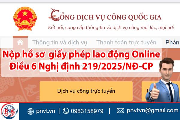 Nộp hồ sơ giấy phép lao động online qua Cổng Dịch vụ công quốc gia được quy định tại Nghị định 219/2025/NĐ-CP của Chính Phủ, ban hành ngày 7/8/2025.